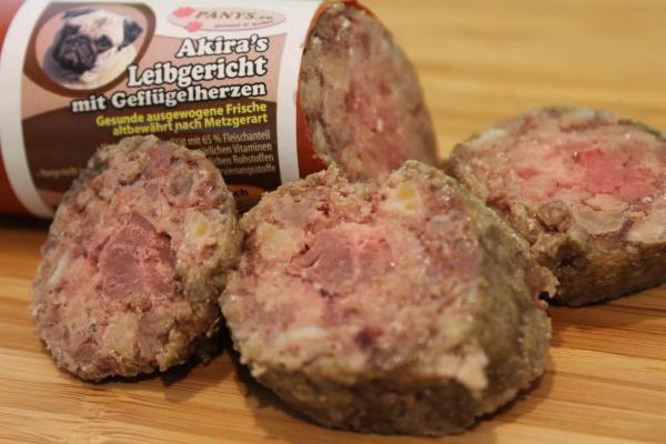 mit Rind und Geflügelherzen. Hergestellt in Deutschland nach Lebensmittelstandard, natürlich ohne künstliche Aroma- und Farbstoffe und nach glutenfreier Rezeptur.