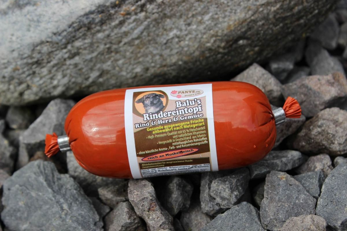 | eignet sich ganz besonders für Hunde die Probleme mit Kohlenhydraten oder Fleischproteinen, wie Geflügel, Lamm etc. haben. High-Premium-Qualität mit 67,0 % Fleischanteil: Dieses Gericht ist für alle ausgewachsenen Hunde als Alleinnahrung geeignet. Hergestellt in Deutschland nach Lebensmittelstandard , natürlich ohne zugesetzte künstliche Aroma- und Farbstoffe und nach glutenfreier Rezeptur. Auch Ihr Welpe darf im Alter ab 3 Mon. die PANYS-Wurst auf 4-5 Mahlzeiten verteilt bekommen. Da Welpen allerdings während des Wachstums noch mehr Kohlenhydrate benötigen, sollten Sie Ihrem Liebling noch Welpen-Trockennahrung zufüttern. Wir wünschen guten Appetit! |