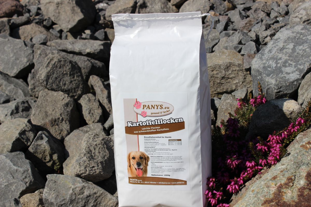 PANYS Kartoffelflocken sind Feinflocken für alle Hunde, besonders hervorragend für ernährungssensible Hunde geeignet. Gern werden die Kartoffelflocken zum zweck der Kohlenhydratergänzung zur täglichen Futterration hinzugefügt.