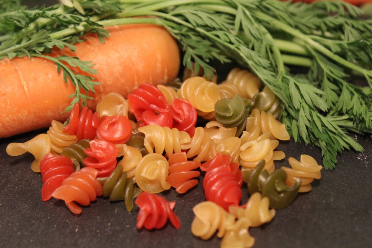 Energiereicher Kohlenhydrate-Mix aus vorgekochten Karotten-, Spinat und Hartweizennudeln. Ergänzungsfuttermittel für ausgewachsene Hunde und Katzen.